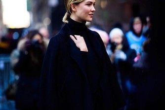 像Karlie kloss這樣塞在綁帶褲中間,不但展現了大長腿,也突出了今年大熱的綁帶元素。