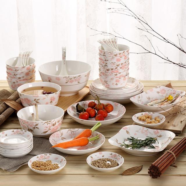這款中式餐具套裝採用的色澤就非常的清新宜人,用在花草圖案裡,更顯生動。