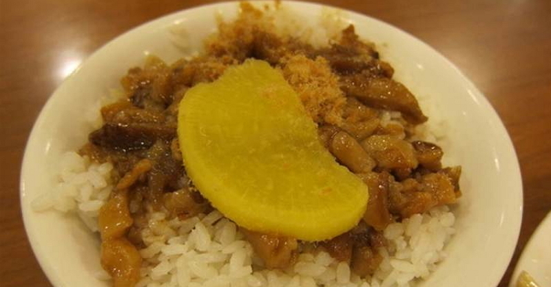 一碗完美的肉燥飯一定會搭配一片鮮豔的黃色醃蘿蔔,