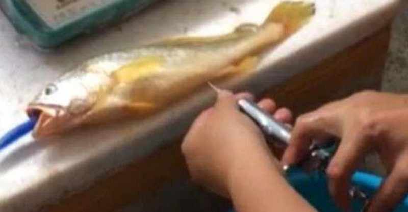 報導指出,這些不肖商人會將黃魚腹部的空氣擠出來,再注入防腐水增重,這樣可以讓黃魚保鮮賣相好,同時又可以用20%水的成本賣20%的黃魚價,非常沒天良!