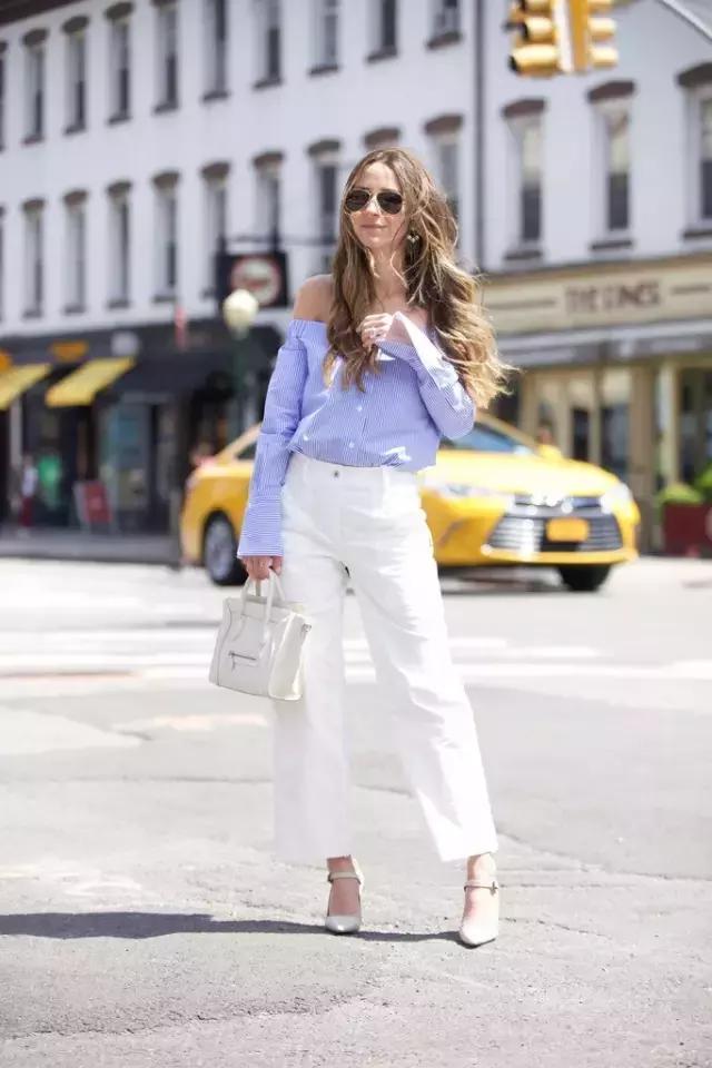 今夏什麼闊腿褲最火?當然是白色闊腿褲,搭配一雙白色鞋子,清爽又顯高。