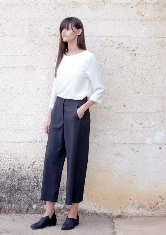 九分高腰闊腿褲露出腳裸,夏日搭配平底鞋也很清爽。