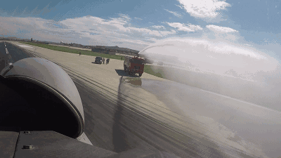 【09:10】面對著這個滿載幾噸航空燃油的“移動軍火庫”,袁偉剛一跳下戰機,該團機務中隊長程剛立即組織機務官兵對準機尾著火部位噴射干粉滅火劑和消防高壓水。“噴左發,別噴右發,別把我的飛機搞壞了!”發現消防戰位處置問題,程剛急得上竄下跳,一把搶過喇叭,大聲喊著指揮滅火併盡最大可能保護戰機。