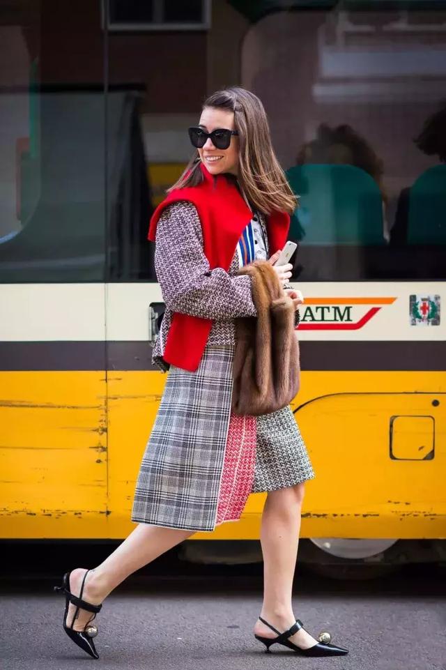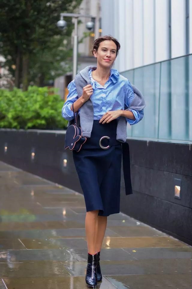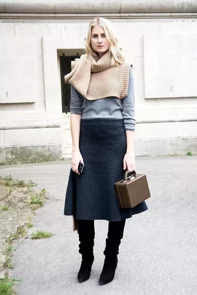 如果天氣還不是那麼冷,就可以在裙子外面綁一件毛衣。