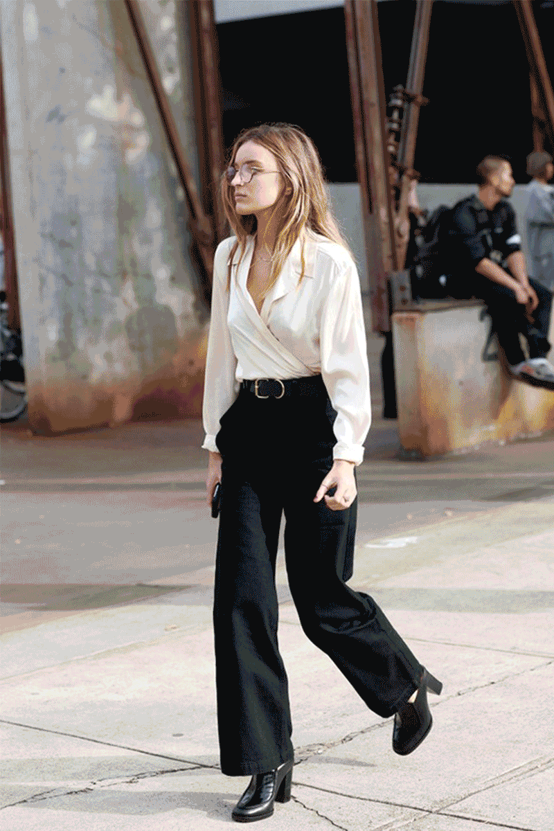 尖頭高跟鞋是很多女人的必備單品,增高顯氣質,誰穿誰知道。用來搭配九分闊腿褲再適合不過了,不僅看上去氣質利落,露出腳踝也是時髦得剛剛好。