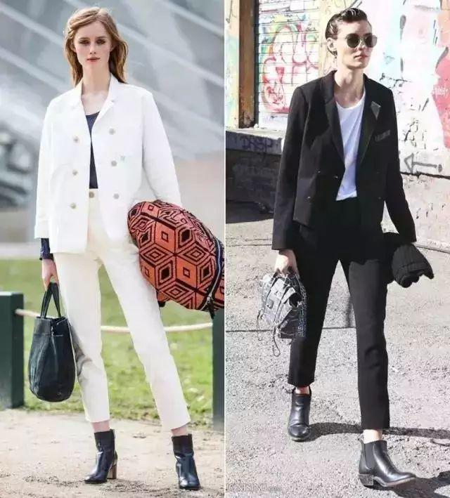 另外,百搭的小黑靴搭配吸煙褲也會帶出一種酷酷的感覺。