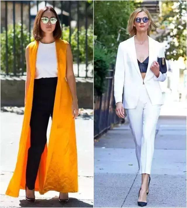 另外,今年流行的吸煙褲顏色也不再拘泥於傳統的黑色,穿白色、粉色、藍色會更清新、更特別。發現沒,這三個造型的內搭都選了白色。