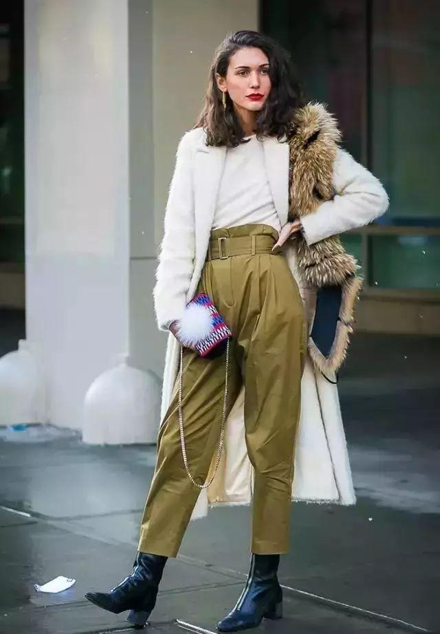 在款式上,這種紙袋褲款的今年也挺多見的,看起來也會比普通款要更多點時髦感。