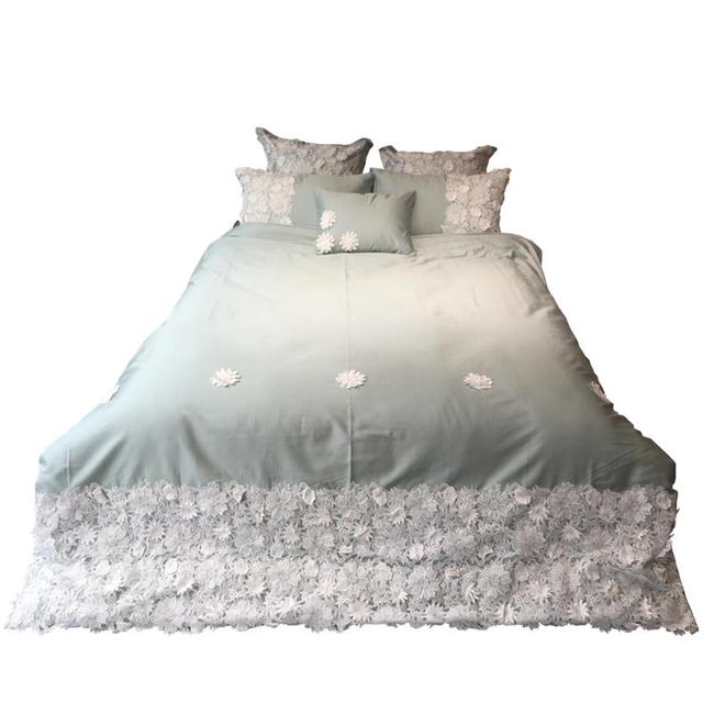 一朵朵白色的小花鋪設在被單上,立體的效果層層疊疊,充滿著浪漫的情調。