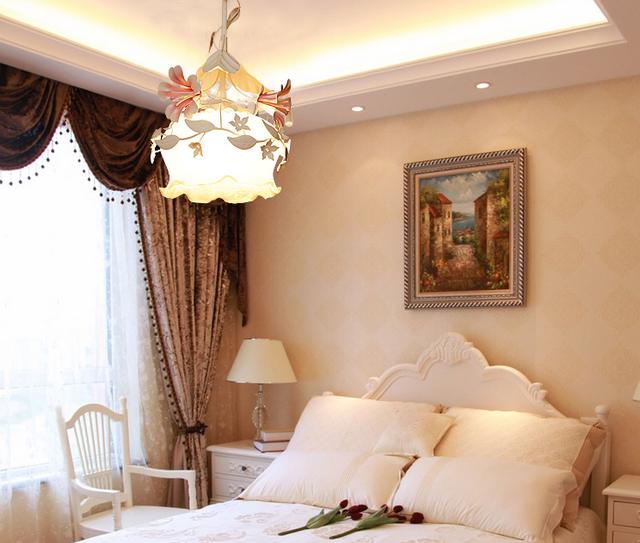 吊燈的效果帶著水晶的光芒,為臥室融入一抹浪漫的風情。