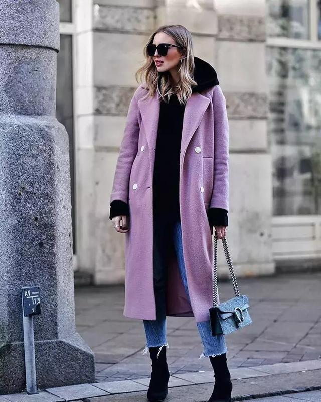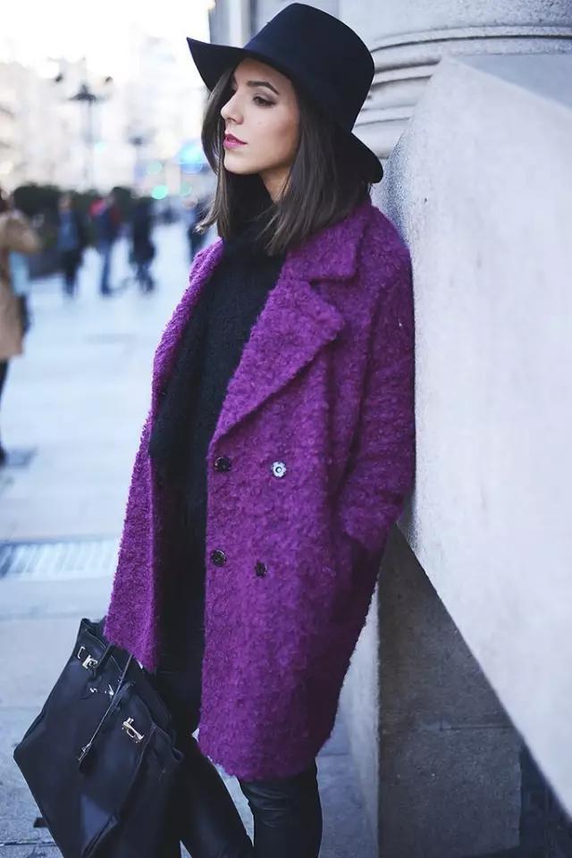 最後搭姐要推薦的則是極具魅力的紫色大衣。曼妙的紫色能夠給基本款大衣增添一種神秘優雅的韻味,女人味十足。