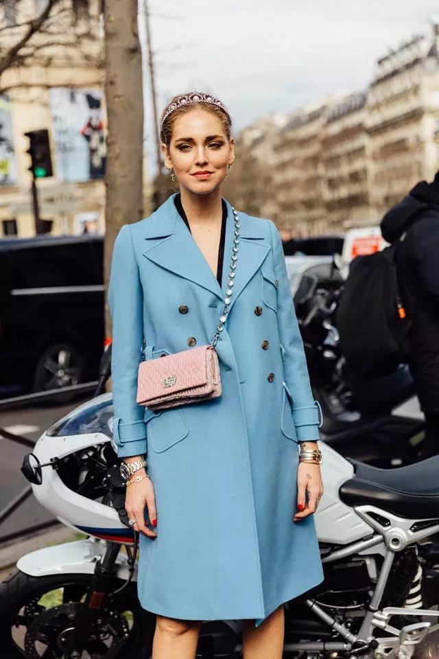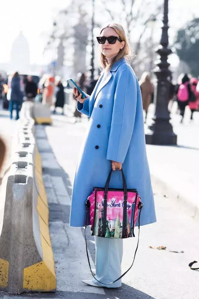 靜謐藍大衣搭配石英粉包包,就完美實現了年度兩種流行色的結合,實在是美爆了!