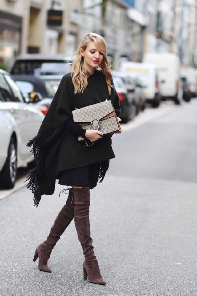 走路帶風的披肩是提升女人氣場的時髦好物,它和長靴也一樣很般配。
