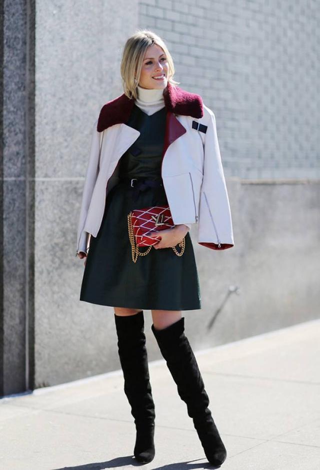 當然如果覺得冷就套上短款小外套,再搭配過膝長靴,俏皮又幹練。