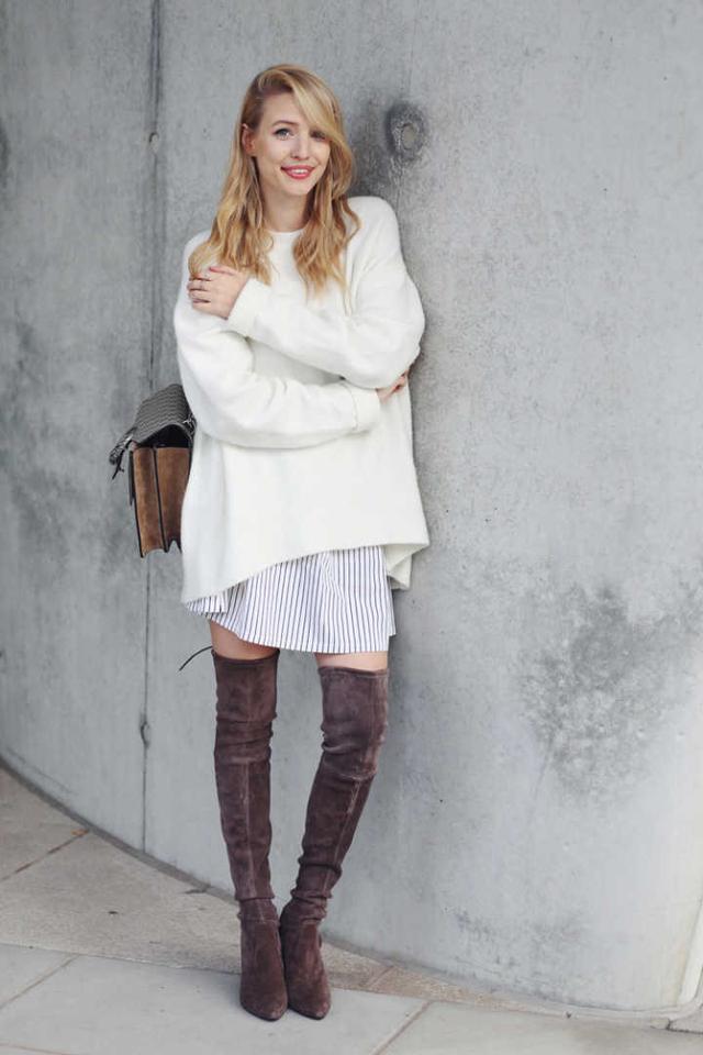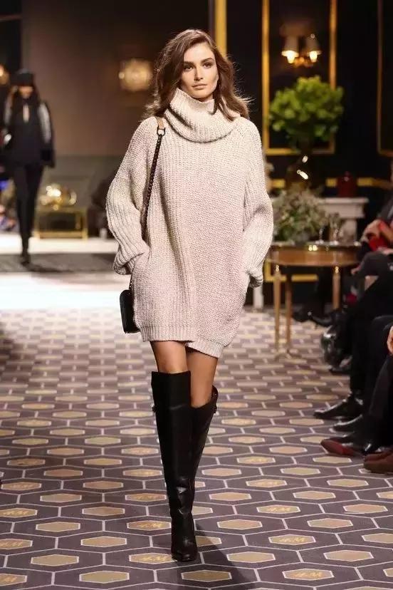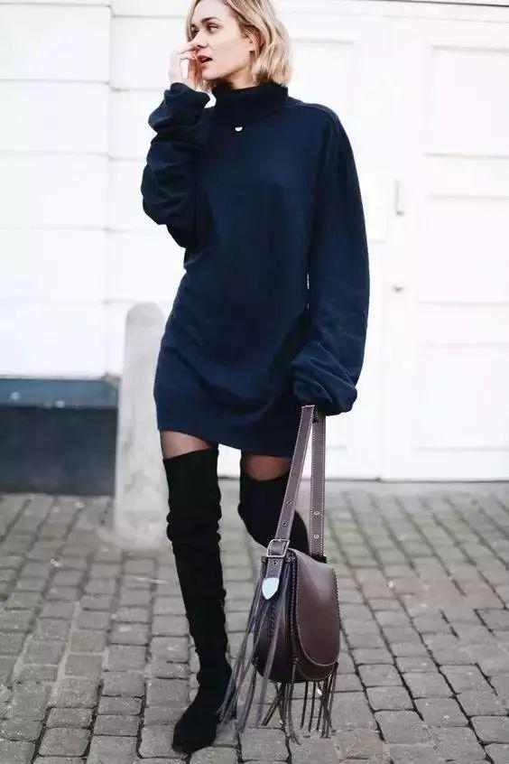 寬鬆的毛衣連身裙,搭配長靴氣質出眾