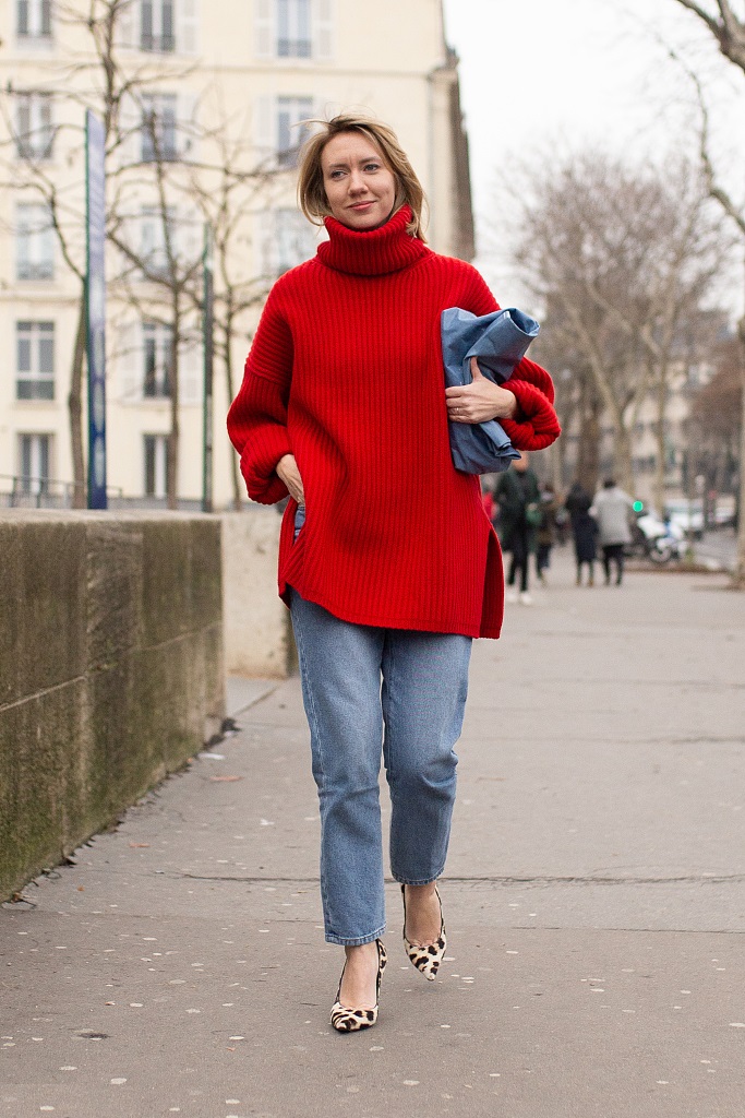 ▲合身而舒適的紅色毛衣,是時髦女人的衣櫥必備,這個季節它就是“戰衣”