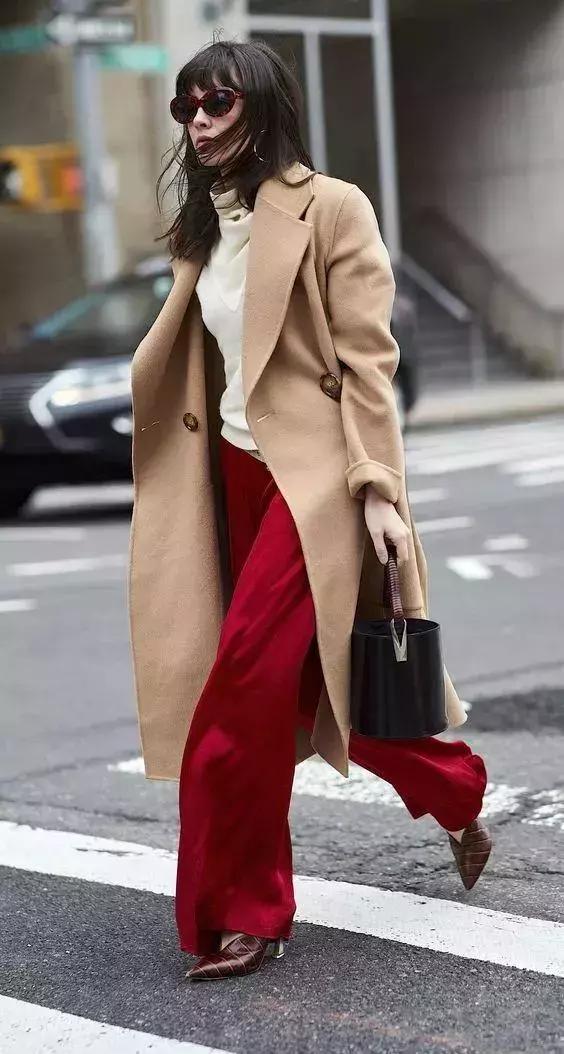 酒紅色大衣會是你的最佳選擇,最能穿出獨屬秋冬的韻味,女人味滿分。