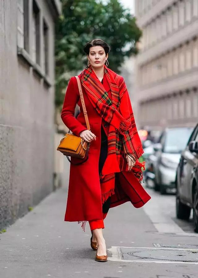 紅色圍巾,也是必備單品,不要忘記一條圍巾的保暖程度可以抵得上一件毛衣哦~保暖又凹造型!