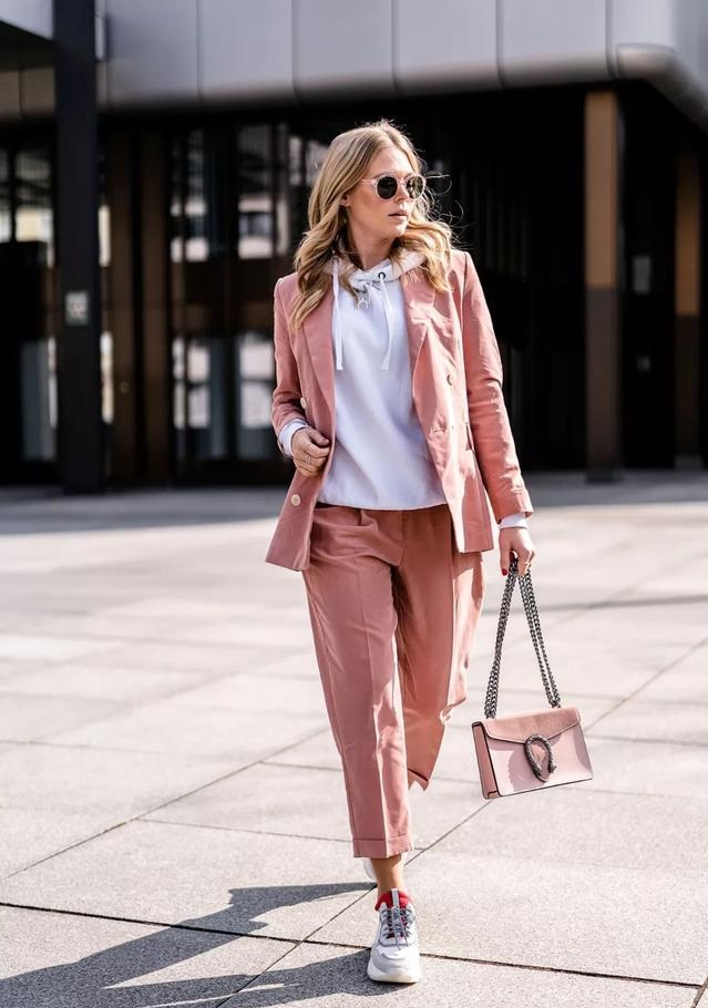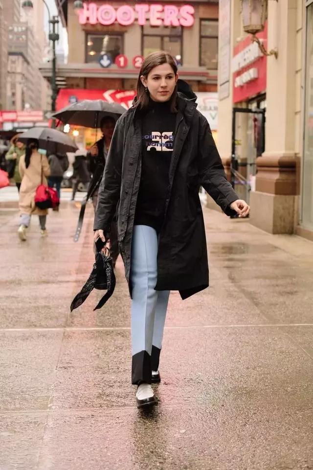 西褲質地的長褲也備受注目,用它來配搭衛衣,集休閒與時尚感於一身。