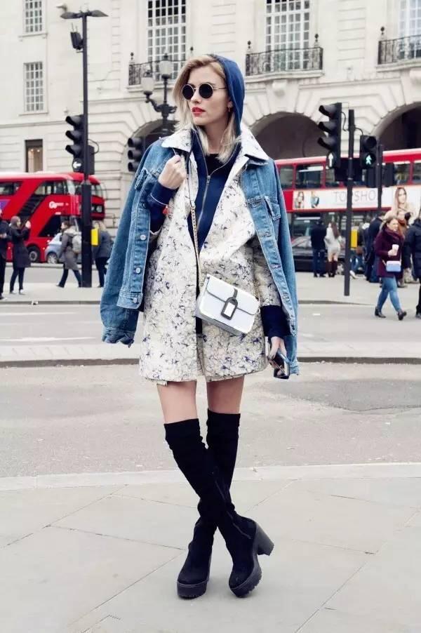當然,把短靴換成長靴還能更保暖一些,微微露出一小塊肌膚,性感度和女人味無窮。