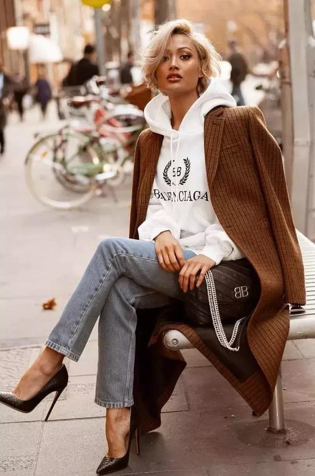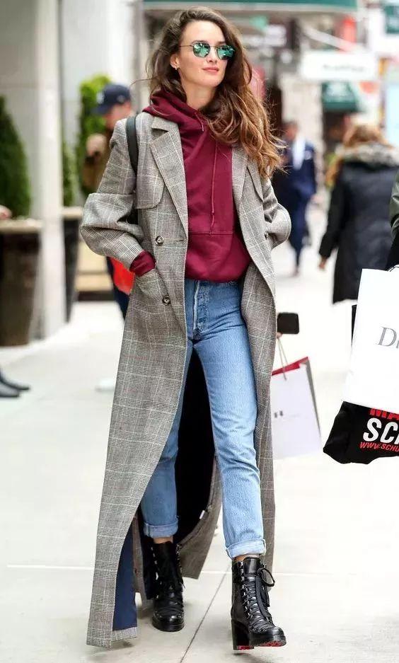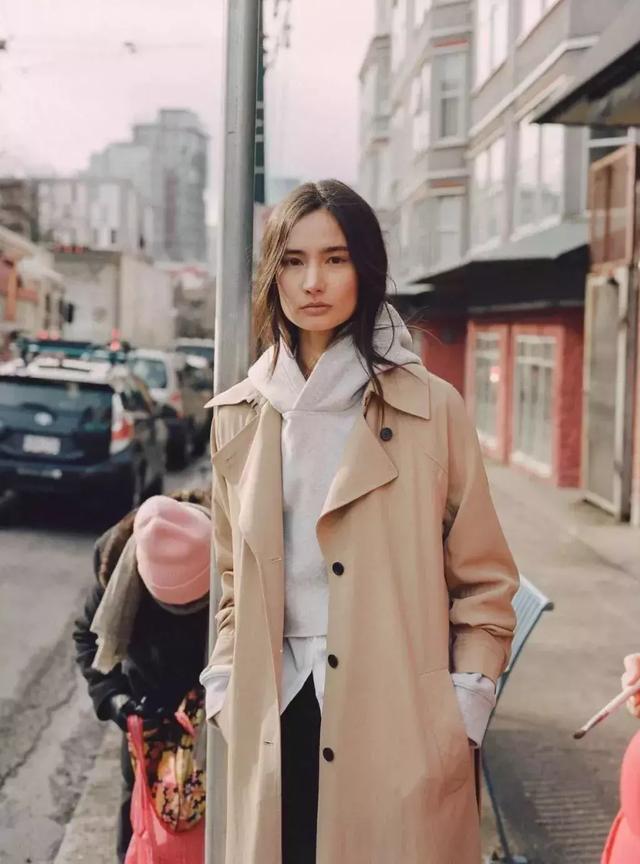 衛衣與牛仔褲,看起來平淡無奇的日常搭配方式,只要再套上一件寬鬆版的系腰風衣,