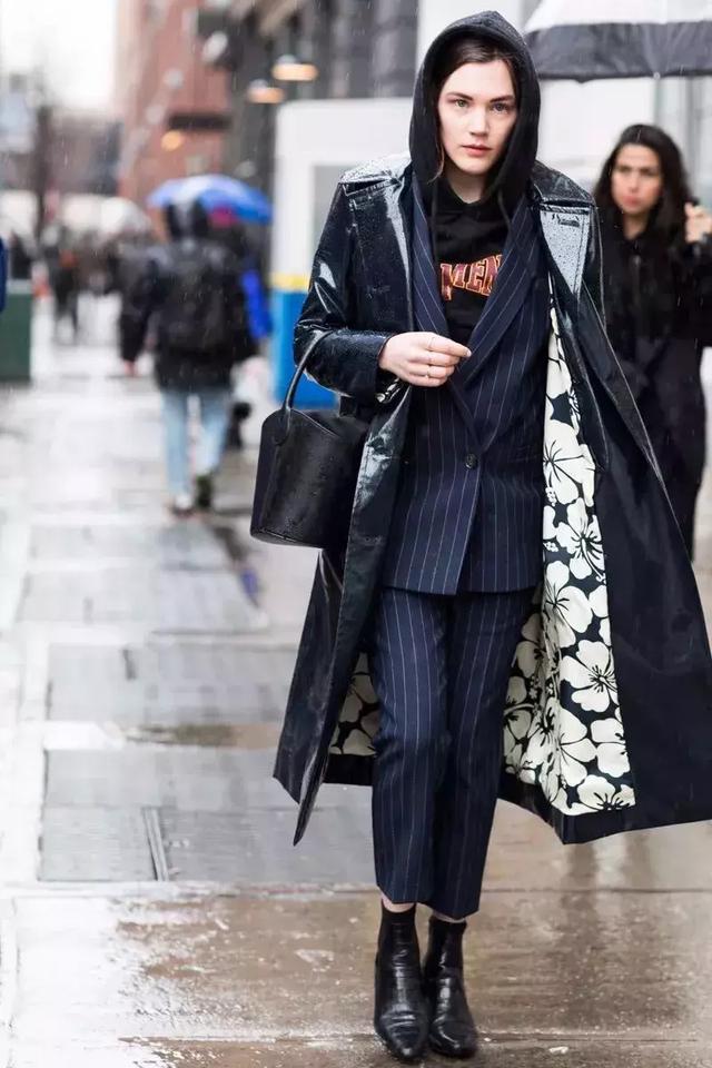 內搭衛衣,穿出獨一無二的美感,像是風衣材質的洋裝、假皮草奢華面料,