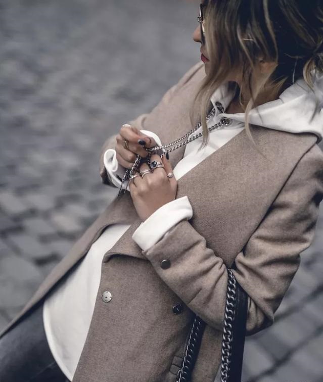 如果大衣是落肩款或者是比較寬鬆的版型,內搭高領衫就會顯得臃腫拖沓。