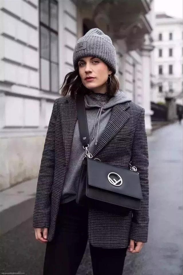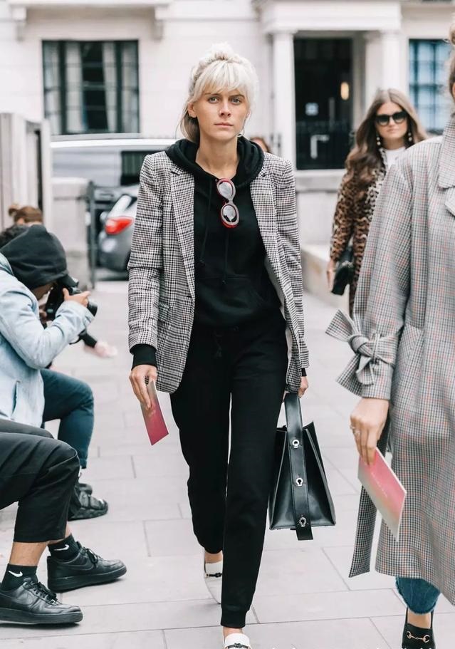 復古的小格紋西裝外套是今年的重點單品,低調沉穩的學院風格搭上休閒的衛衣,