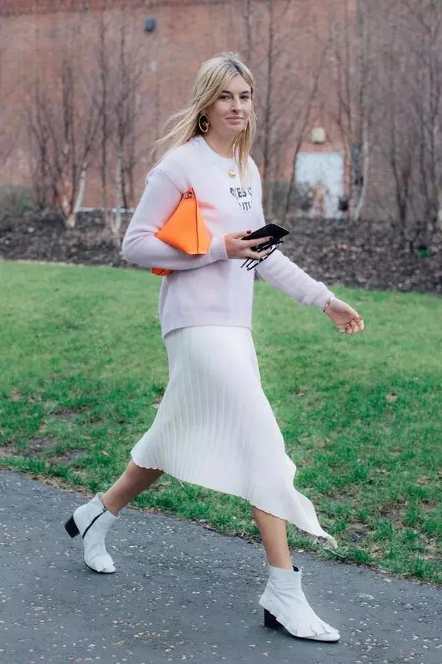 而且也不會有被“忽視”的感覺,小白靴的款式,也能輕鬆打造出T台級別的效果。