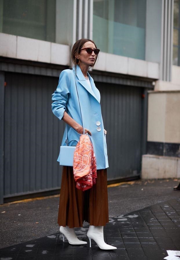 休閒式的西裝褲搭配小白靴,能輕易的營造出很easy的時髦感,