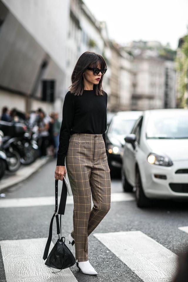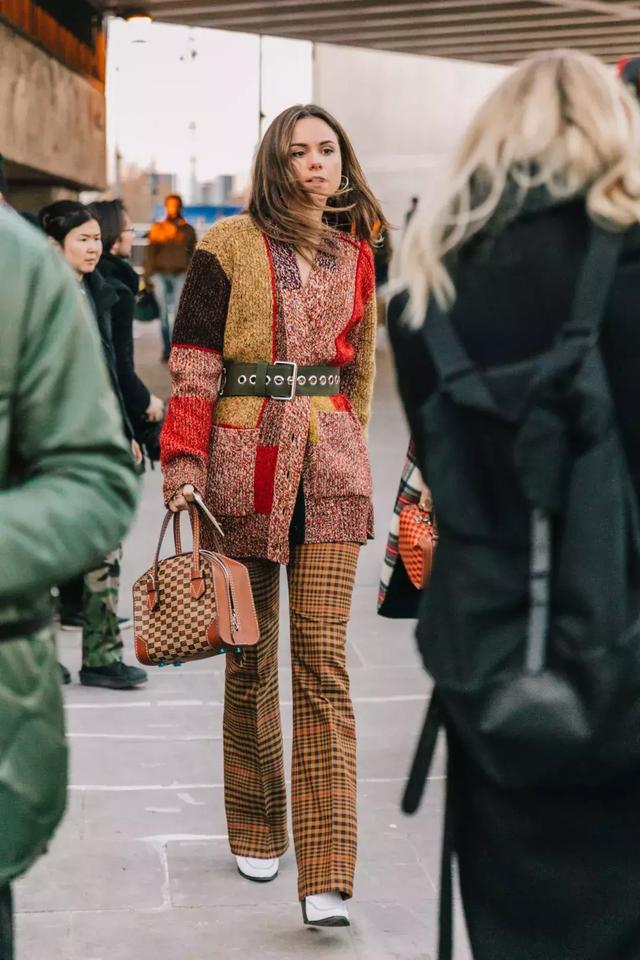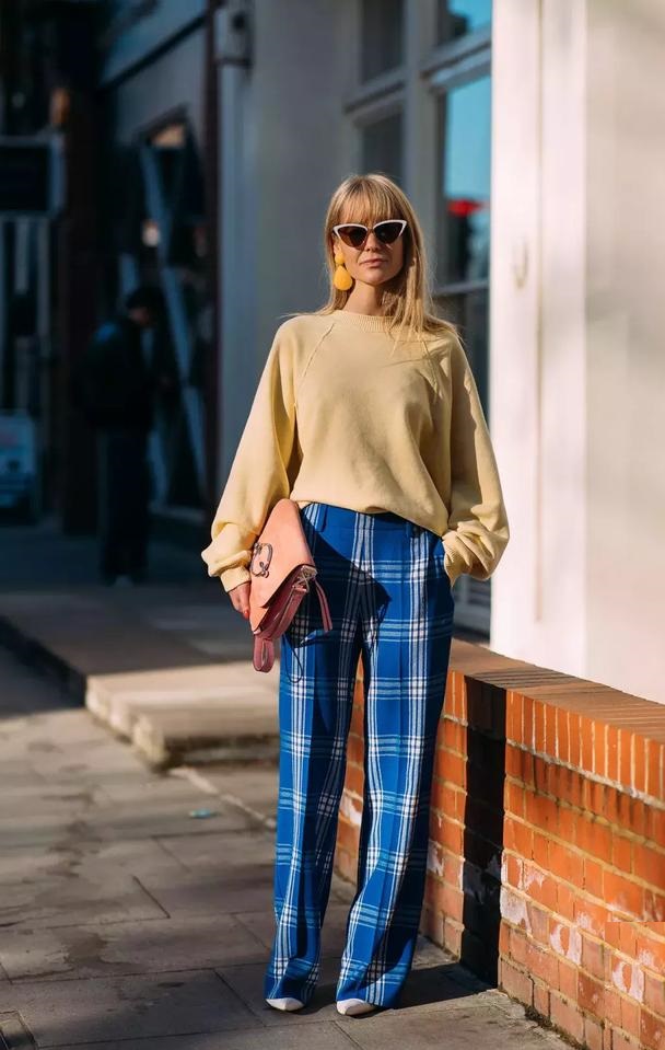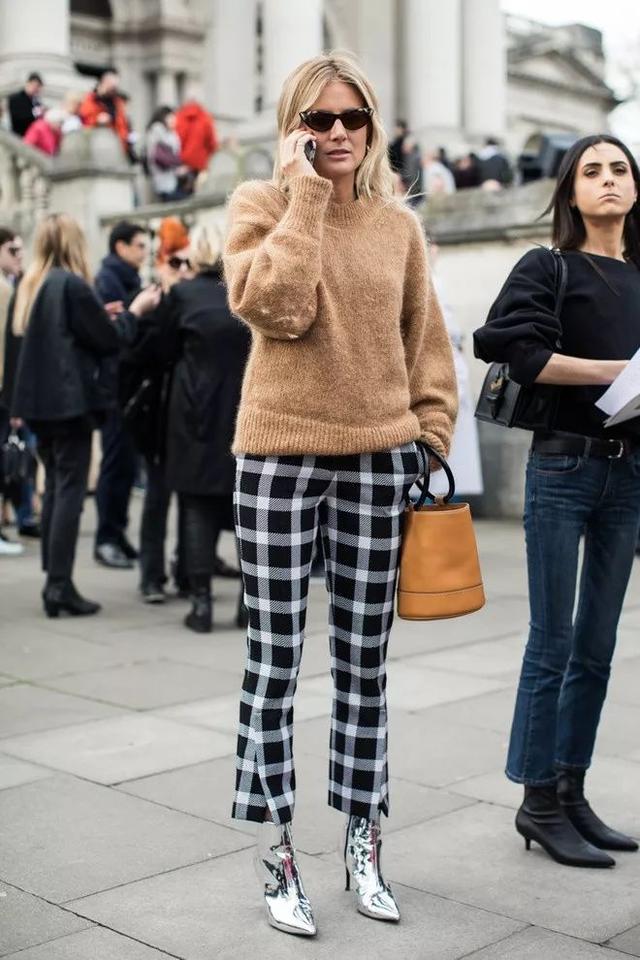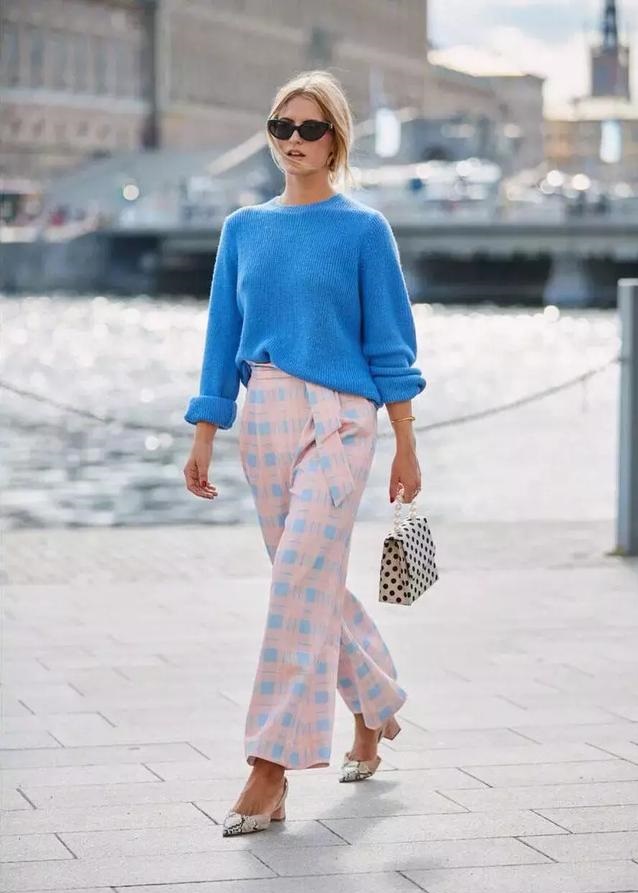 今年流行的格紋褲,直筒的九分褲型就很好駕馭,和素色的毛衣搭配著化解了單調,格外時髦~