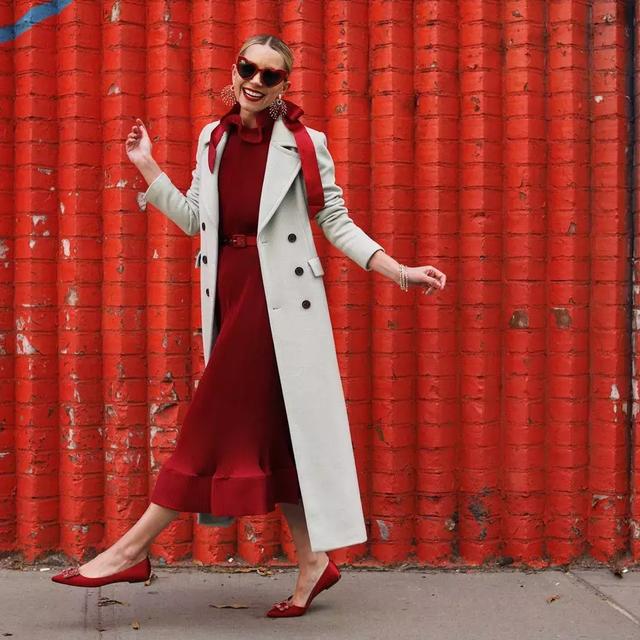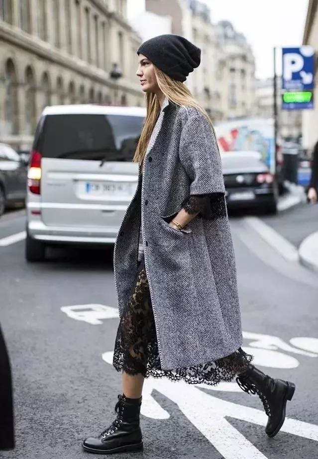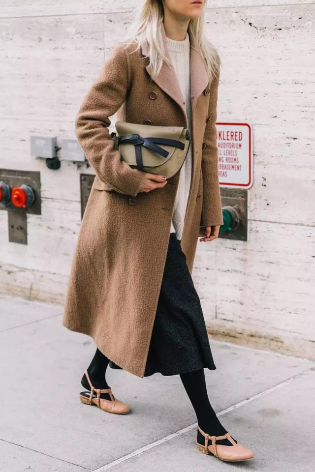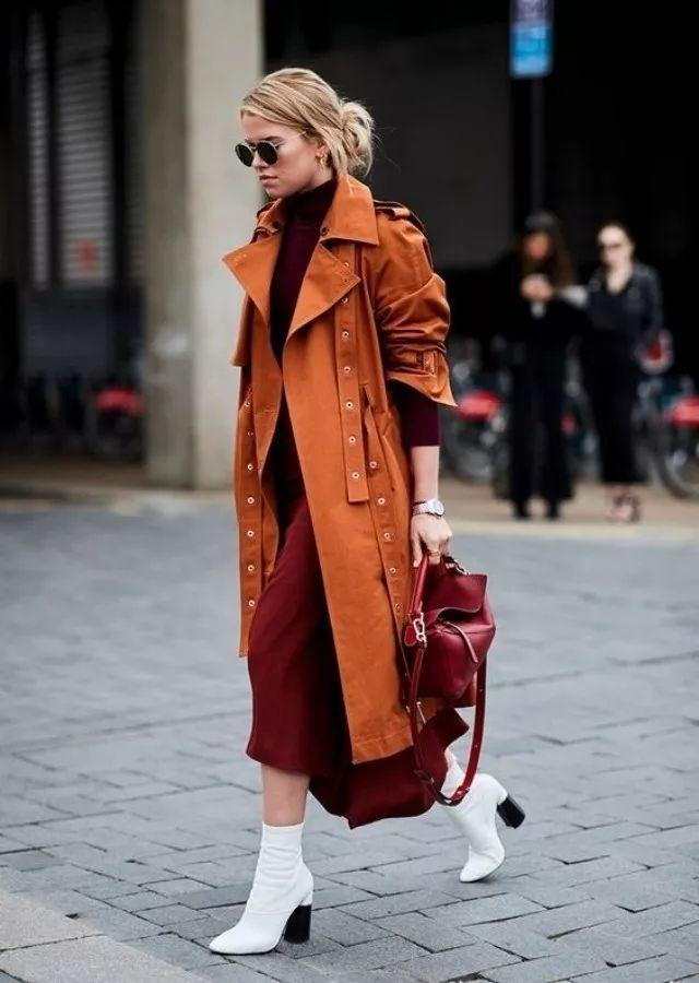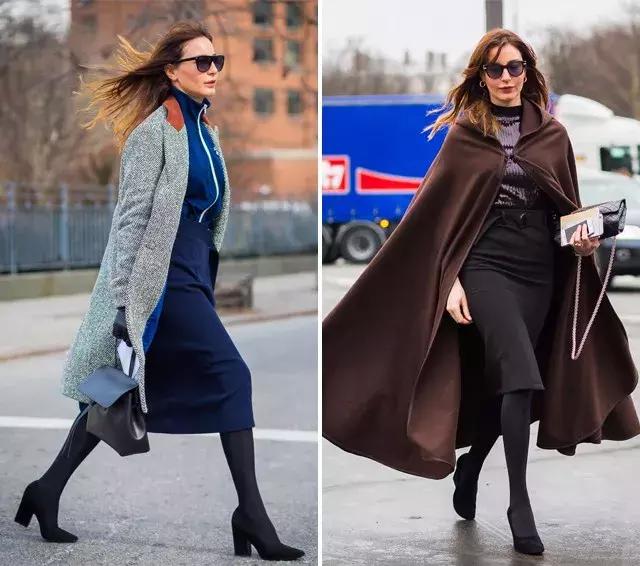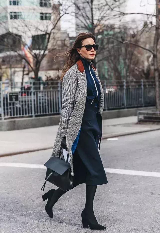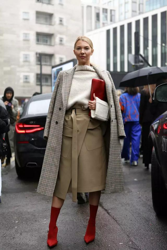 在穿大衣配長裙的時候,許多人往往會忽略一些細節,首先就是腳踝處。