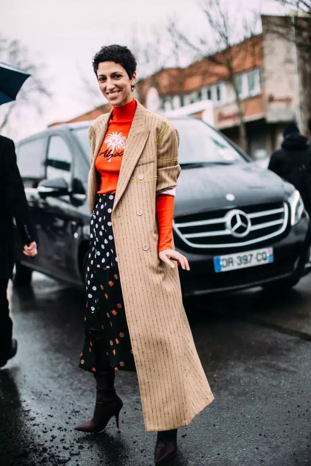像Caroline Issa選擇的長裙與長大衣就偏長,導致整個造型邋遢。