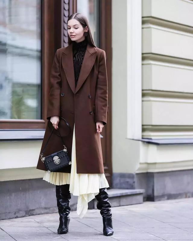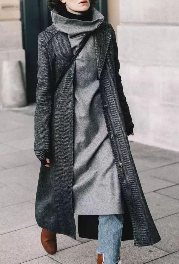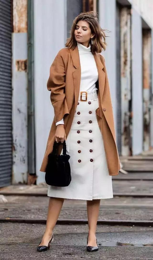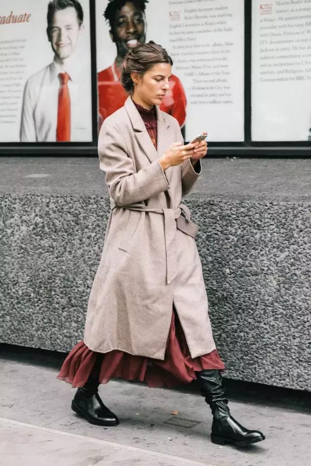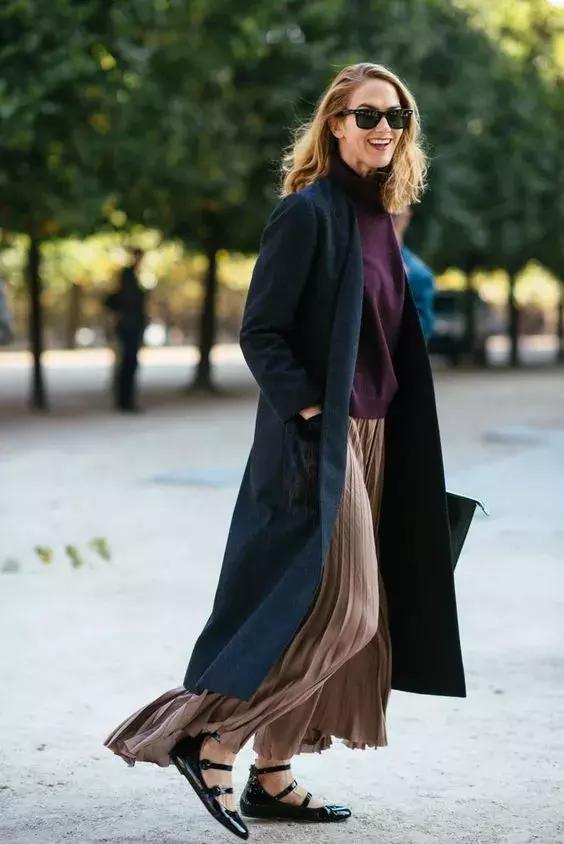 換一個到腳踝處的長大衣,再搭配比大衣略短的長裙,是不是瞬間就乾淨利落了很多?