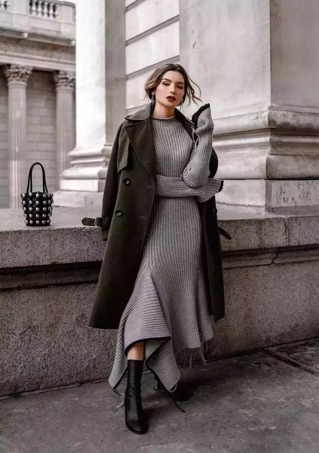 所以如果你追求溫暖、質感,那麼針織長裙和大衣的搭配就非常適合你。
