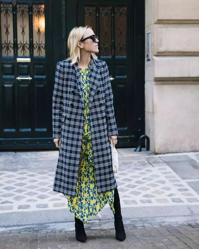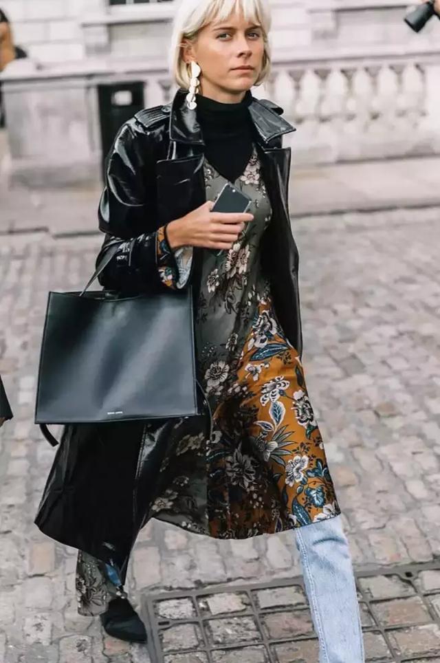 長外套+印花裙 打破沉悶的公式