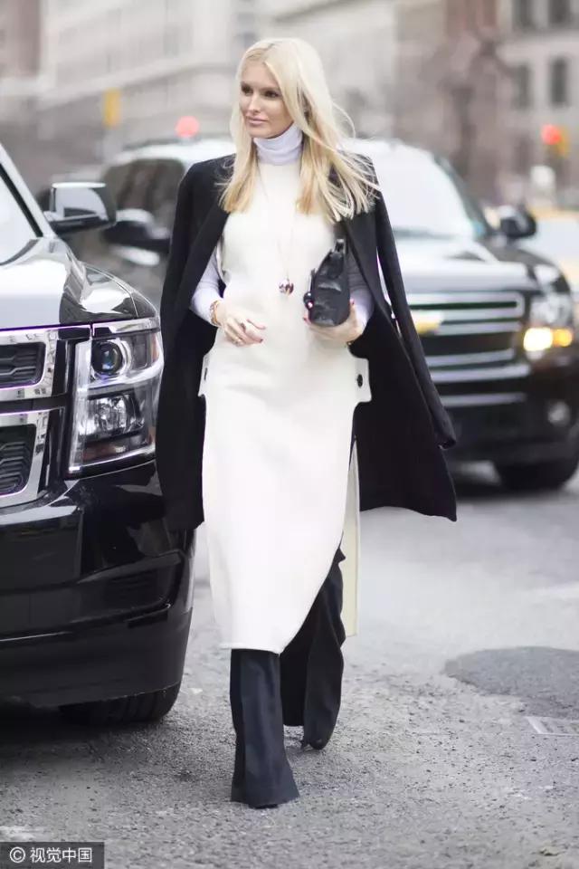 長外套和長裙的長度差一定要留出足夠的空間,通常至少保證留出15-20cm。