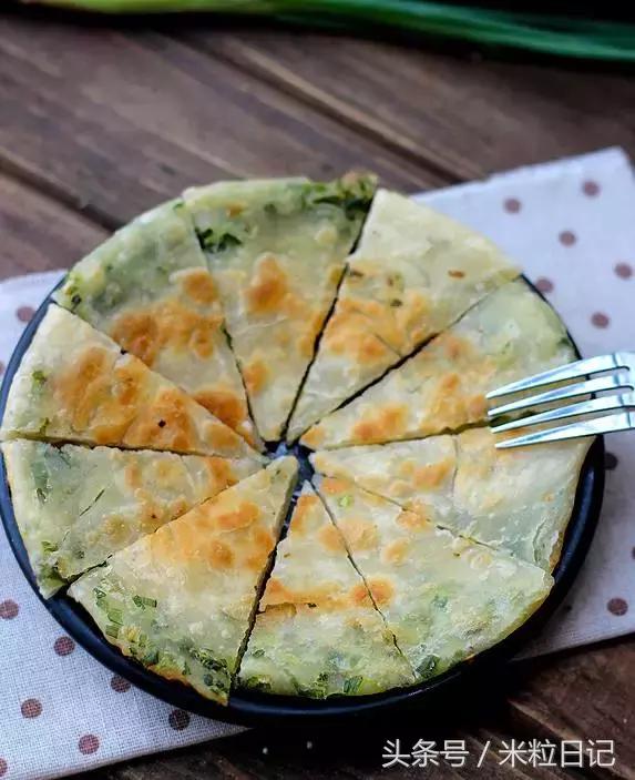 4. 把煎熟的蔥油餅切成小瓣,方便使用。