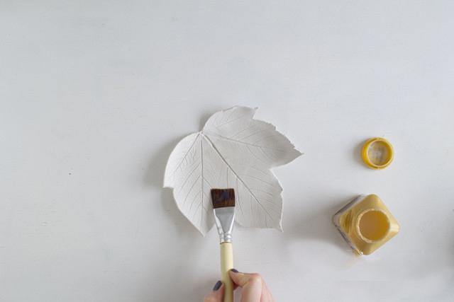 大型的樹葉、紙粘土(空氣自然乾燥),清漆擀麵杖或者滾筒,美工刀,油漆刷,清漆