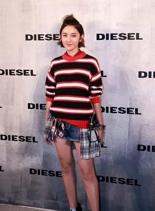 唐藝昕的條紋針織衫配上復古格子衫繫在腰間,復古的Boyish風一秒get。