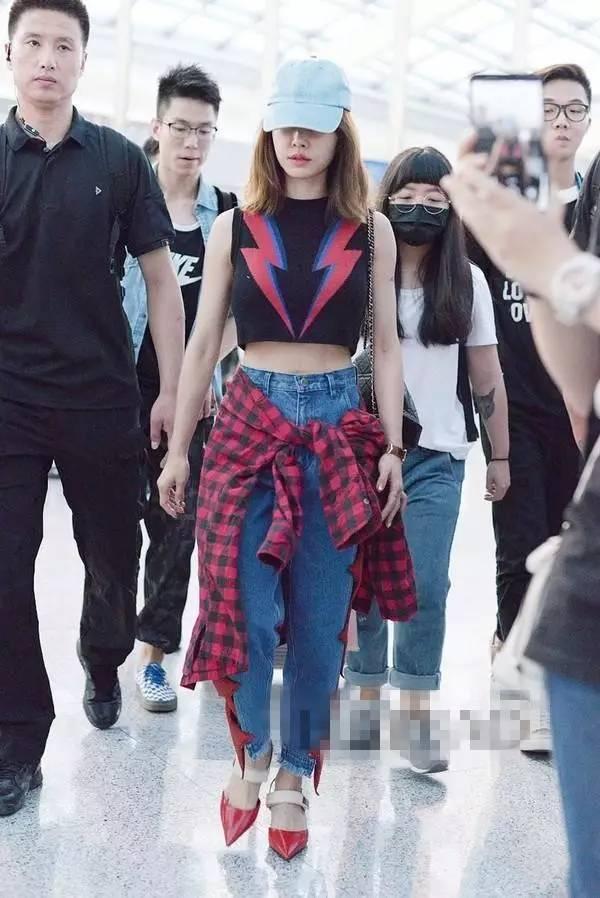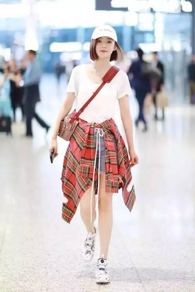 這也是袁姍姍喜愛的穿法。增加了街頭的隨意度和清新時尚的味道。
