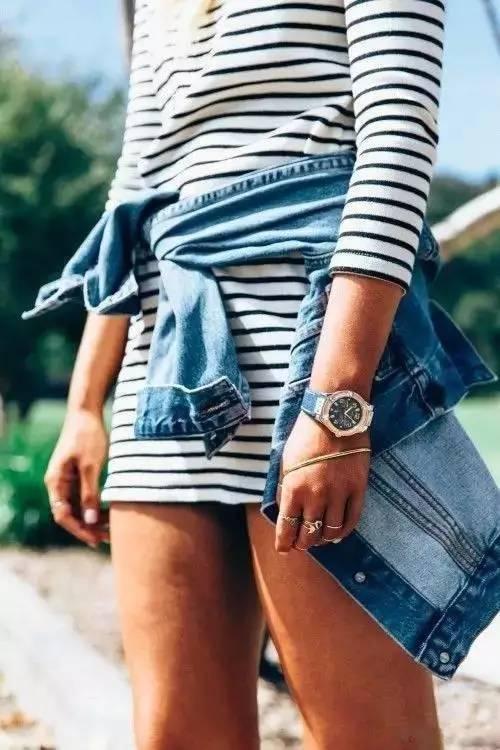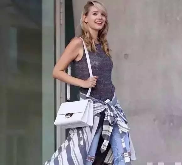 襯衫圍在腰部的時候很多人容易忽略袖子的細節,自然垂下的袖子如果過長的話可以將袖口向上卷一層。