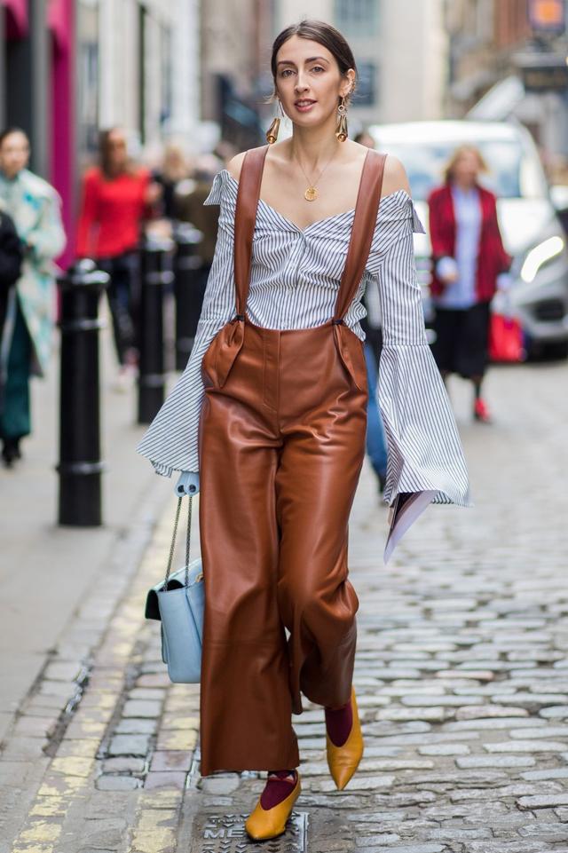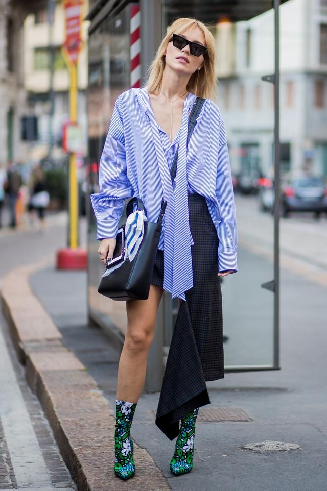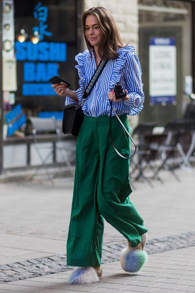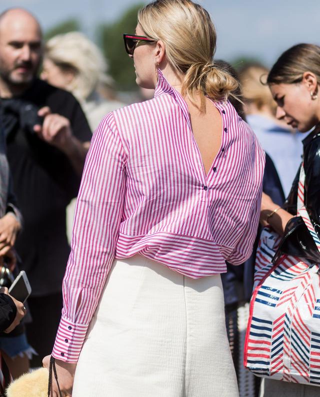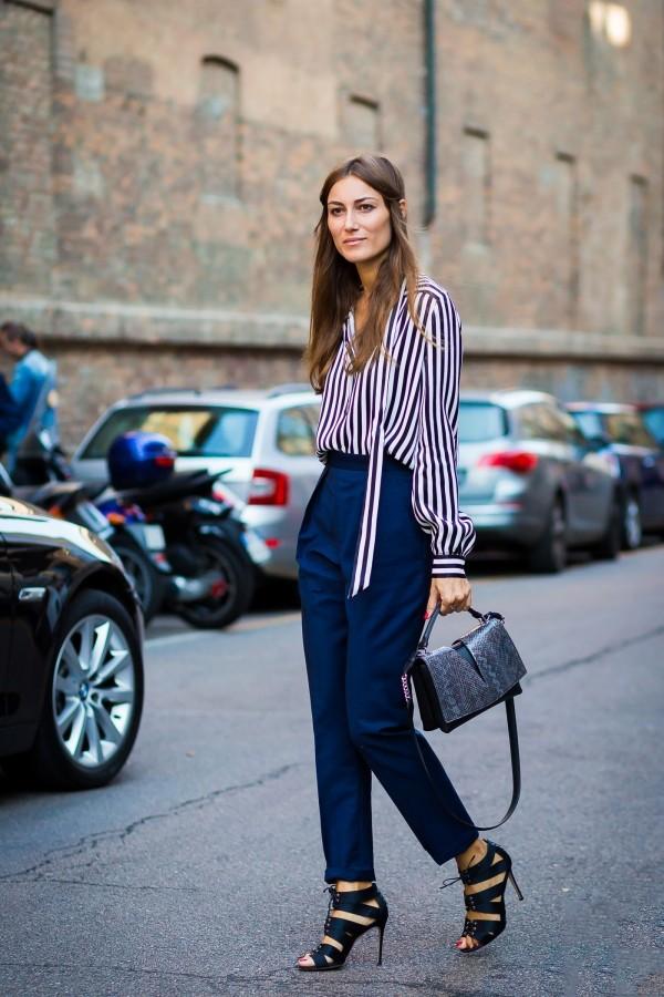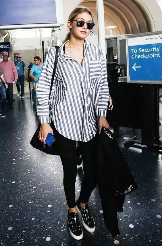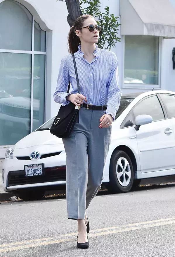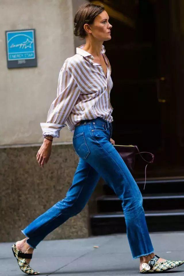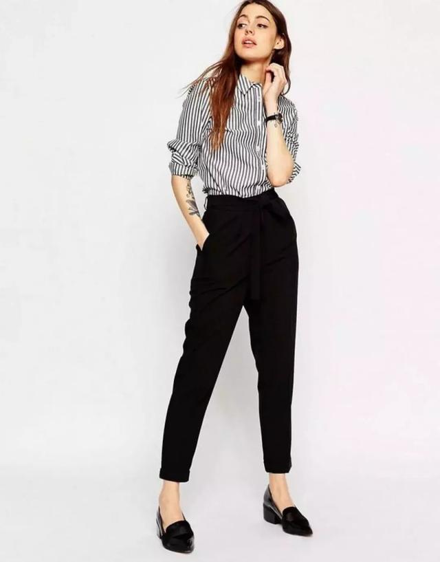 本身就比較帥氣時尚的條紋襯衫,搭配最簡單的褲裝就足夠好看;
