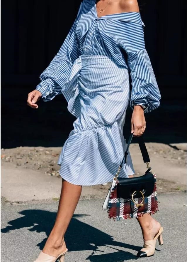 而細條紋穿起來更顯瘦一些,搭配裙裝柔美氣質極了。