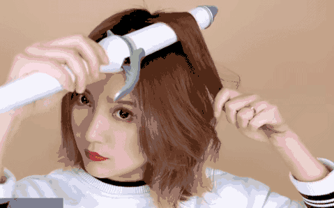 如果想讓髮根處更蓬鬆一點的話,可以用一隻手拉住髮尾,另一隻手用捲髮棒在髮根處停留片刻,讓髮根的頭髮形成一個弧度