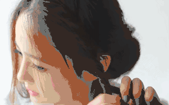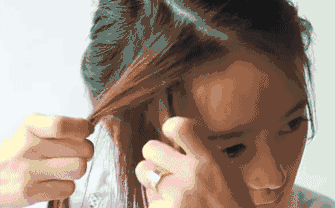 取鬢角最上面的兩縷頭髮擰在一起,然後再取兩縷頭髮和上面的頭髮擰在一起,以此類推,直到沒有多餘碎發