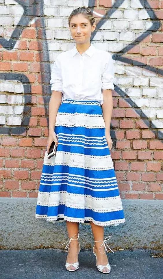 對於白襯衫和迷笛裙來說,搭什麼鞋尤為關鍵,最好是一雙簡單的細高跟,將優雅進行到底。