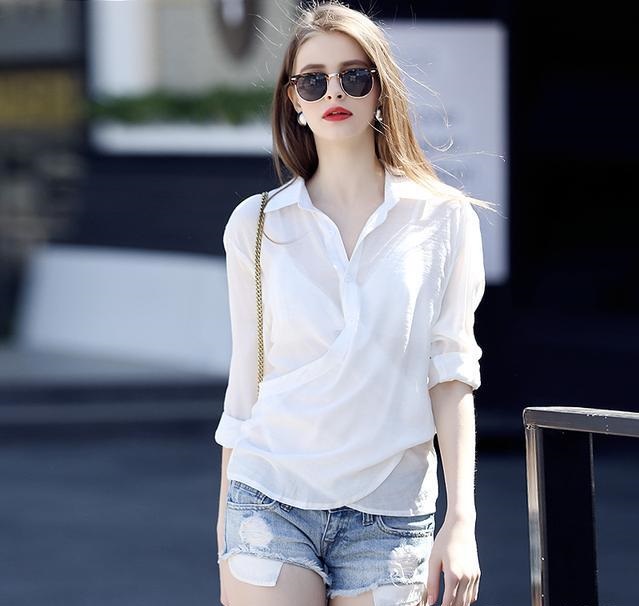 除了純棉之外,真絲、雪紡也是比較常見的白襯衫材質,