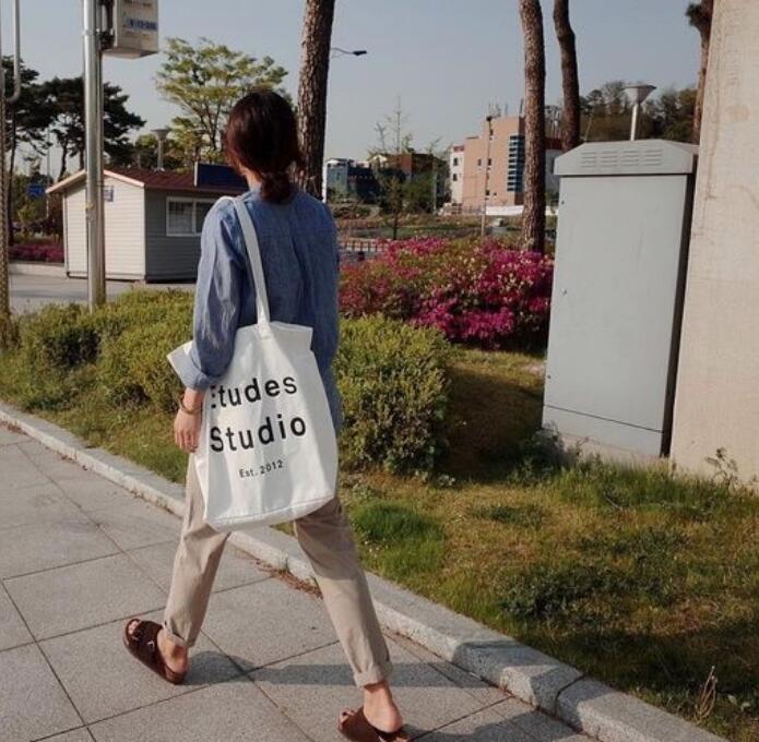 這個百搭搭配組合就是我們日常最普遍的穿搭,這個時候隨手拿個帆布袋是最合適不過的事兒了~