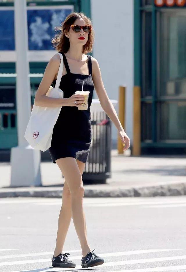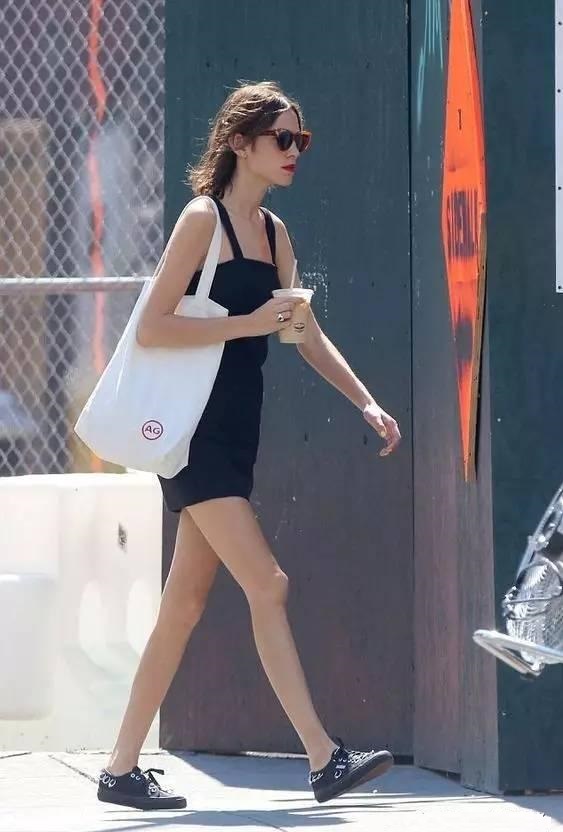像潮人性感的小黑裙也直接搭簡約的帆布包,